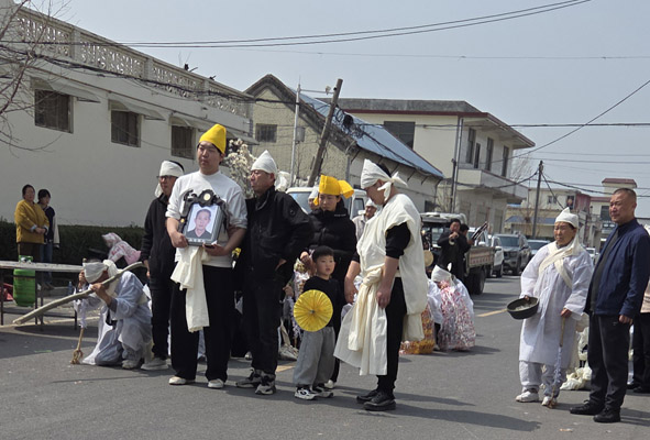 mourners removed their white over clothes.