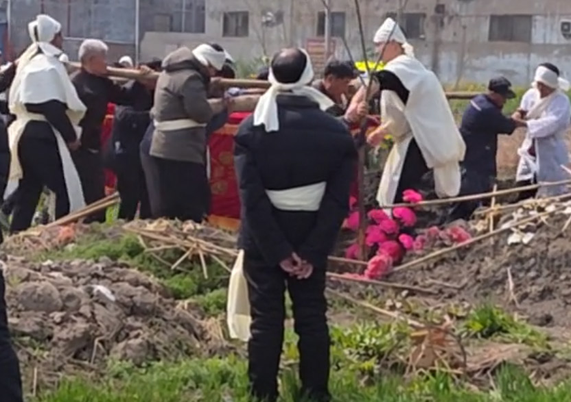 to wait for the funeral, to digging the hole in the ground with shovels before the ceremony, to
