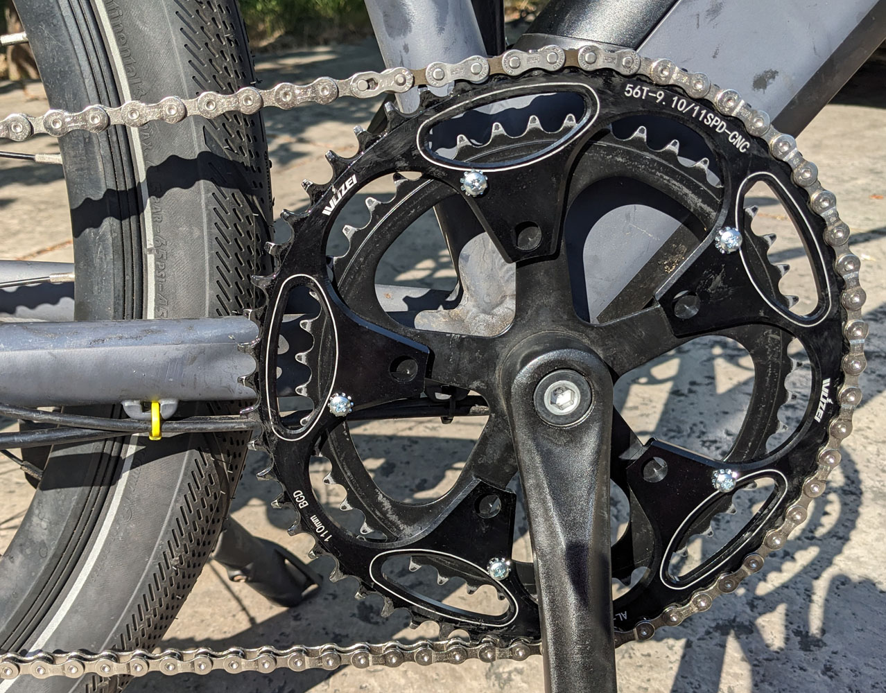 You can see that gear one of the modified bike is above the stock gear one, so we are sacrificing about 14% on the low end.